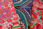 バーンロムサイのプロダクツの中でもファンが多く人気の高いの古布財布。縫製場を担当する真理子さんや、亜