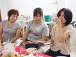 先日、これまで縫製場を担当してきた山田麻莉子さんの送別会が行われました。もうこの日は朝からみんなそわ