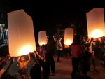 前日に引き続き、灯篭を制作し続ける保母さんたち。私も一つ作らせてもらいました。土台となるバナナの幹バ