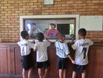 土曜日の昼ごはん。ロムサイFCの練習後のちびっこたちはお腹ぺこぺこ。男子は、男子寮にごはんを持って行